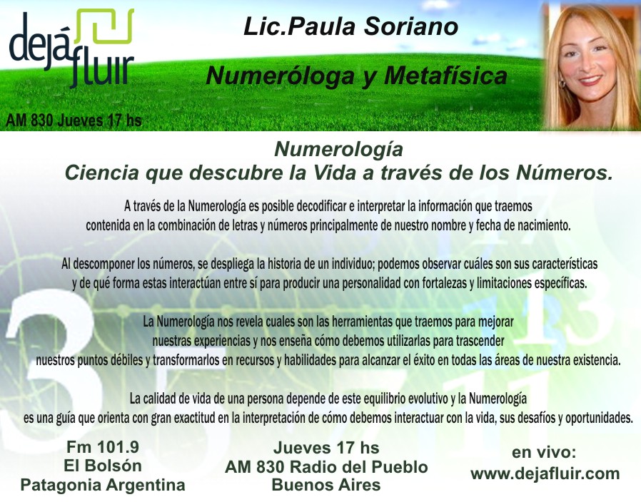 La Lic. Paula Soriano en Deja Fluir. Numerológa y metafísica. Imperdible!